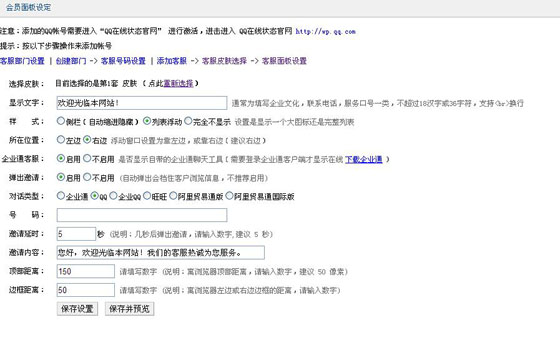 2.灵活的面板设置。可选择是否启用、是否邀请,可增加欢迎广告语,可控制展现位置。